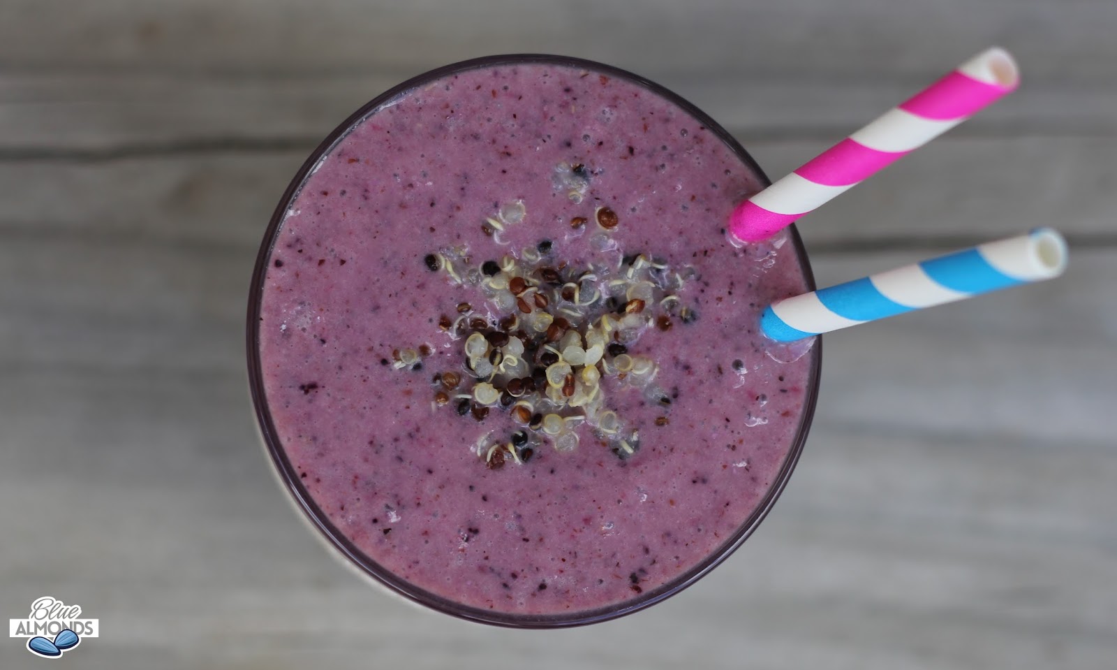 Wyjątkowy, pełen protein i zdrowia koktajl z komosy ryżowej na mleku migdałowym z borówkami i malinami, które pomagają oczyścić organizm z toksyn, a ponadto działają antynowotworowo i są idealne na odchudzanie.