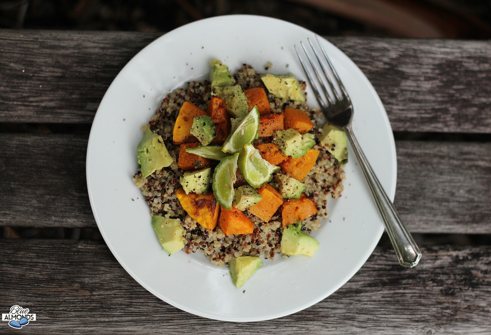 - Wyłóż komosę na talerze, przykryj pieczoną dynią i awokado. Przypraw świeżo mielonym pieprzem i solą. Skrop cytryną lub/ i sosem sojowym (jeśli wykorzystasz sos sojowy nie ma potrzeby solić potrawy).